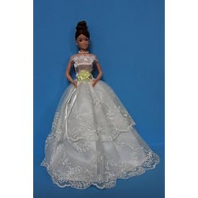 Elegant White Barbie Wedding Gown with Veil and Gloves